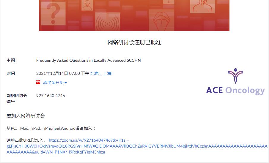 ACE Oncology网络会议将于12月14日19:00-20:45举办,会议主题:Frequently Asked Questions in Locally Advanced SCCHN,我院师生积极参与,所有硕导均参加线上会议,合计34人,硕士研究生参会人数7人。