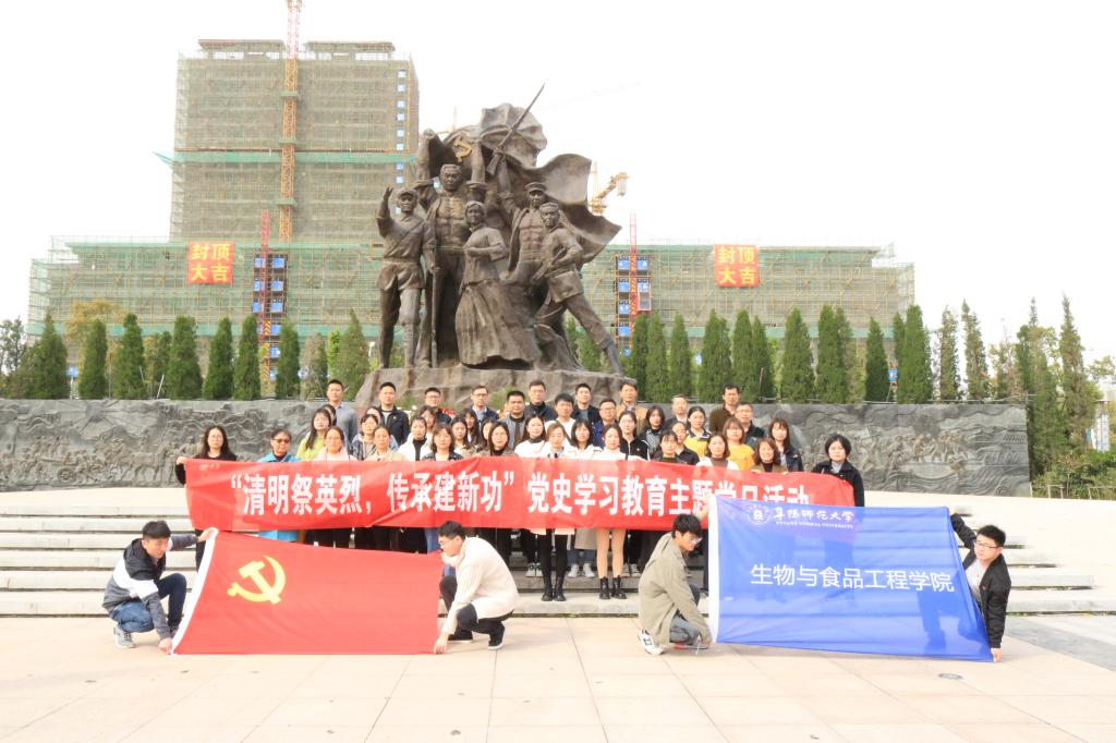 雨洒季春敬忠烈,花开清明慰英魂。清明来临之际,为深入贯彻习近平总书记在党史学习教育动员大会上的重要讲话精神,把党史学习教育推向深入,3月30日下午,生物与食品工程学院组织师生党员赴阜阳市革命烈士纪念馆,开展“清明祭英烈,传承建新功”党史学习教育主题党日活动,缅怀革命先烈的英雄业绩,学习革命先烈的革命精神,激发奋斗力量的主旋律。