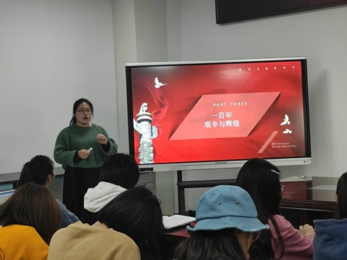 活动初始,全体党员面对党旗再一次庄重地作出自己对党的庄严承诺,重温入党誓词。随后优秀党员代表许雯雯、李努力同志结合本专业特点,通过自身的奋斗经历以宣讲的形式进行革命传统教育。宣讲过后,支部组织委员熊阳阳倡导支部党员同志现场写下“我的承诺”。活动最后,支部各党小组分别派代表进行党史故事分享。通过这一系列党建活动的开展,更加坚定了共产主义信念,纷纷表示要向伟人学习、向身边的优秀党员同志学习,为伟大复兴的中国梦增添“青春正能量”。
