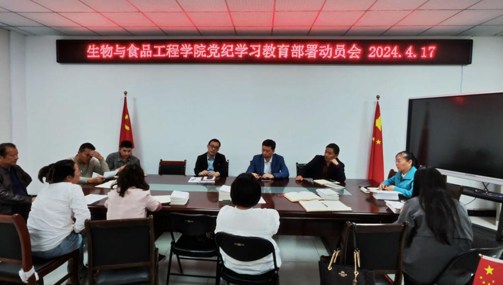 4月17日,生物与食品工程学院在西湖校区躬行E楼302会议室召开党委专题会议,研究部署党纪学习教育工作。学院党委副书记韩天鹏主持会议,班子成员、党委委员、党支部书记参加会议。