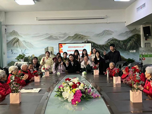 为弘扬中华民族敬老爱老的传统美德,丰富长者的日常生活,改善身心健康状态。生物与食品工程学院青年志愿者协会成员走进阜阳红叶林老年护理院,举办让“园艺”走进老人活动。