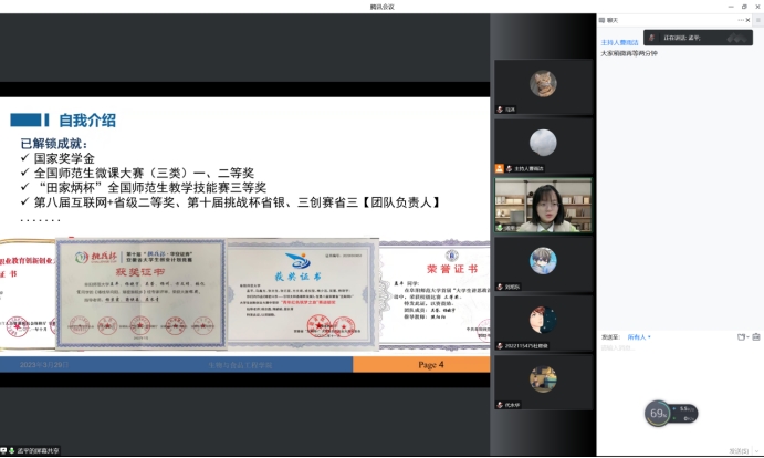 为进一步推进资助育人工作,充分发挥发挥先进典型示范作用,加大学生资助政策宣传力度,加强对受助学生的感恩教育和励志教育,3月29日下午,生物与食品工程学院通过腾讯会议举办了“榜样力量 青春领航”优秀学生宣讲会,学院各年级学生在线参会,2022年国家奖学金获得者孟平、国家励志奖学金获得者马慧丽担任宣讲嘉宾。