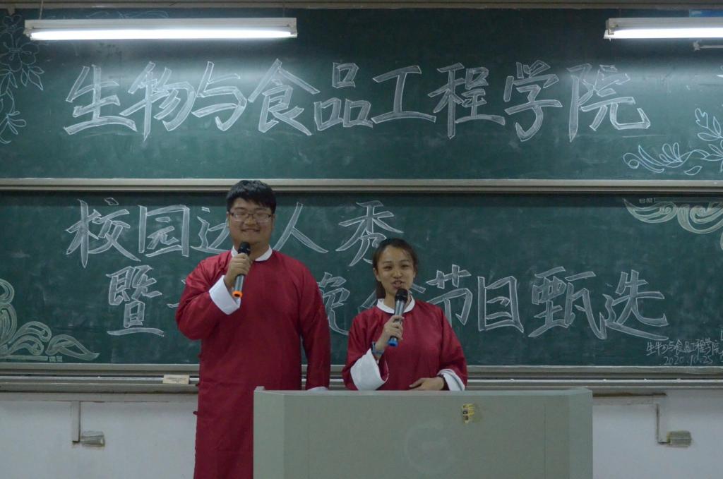 为丰富我院青年大学生校园文化生活,展现大学生青春风采,生物与食品工程学院于10月25日于躬行楼D楼211、213教室举行2020年校园达人秀比赛。