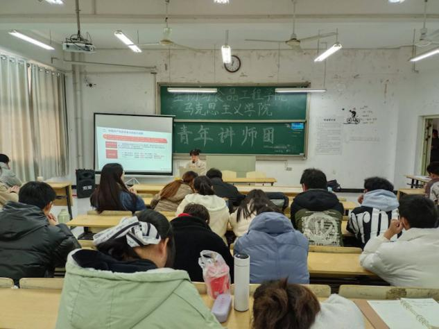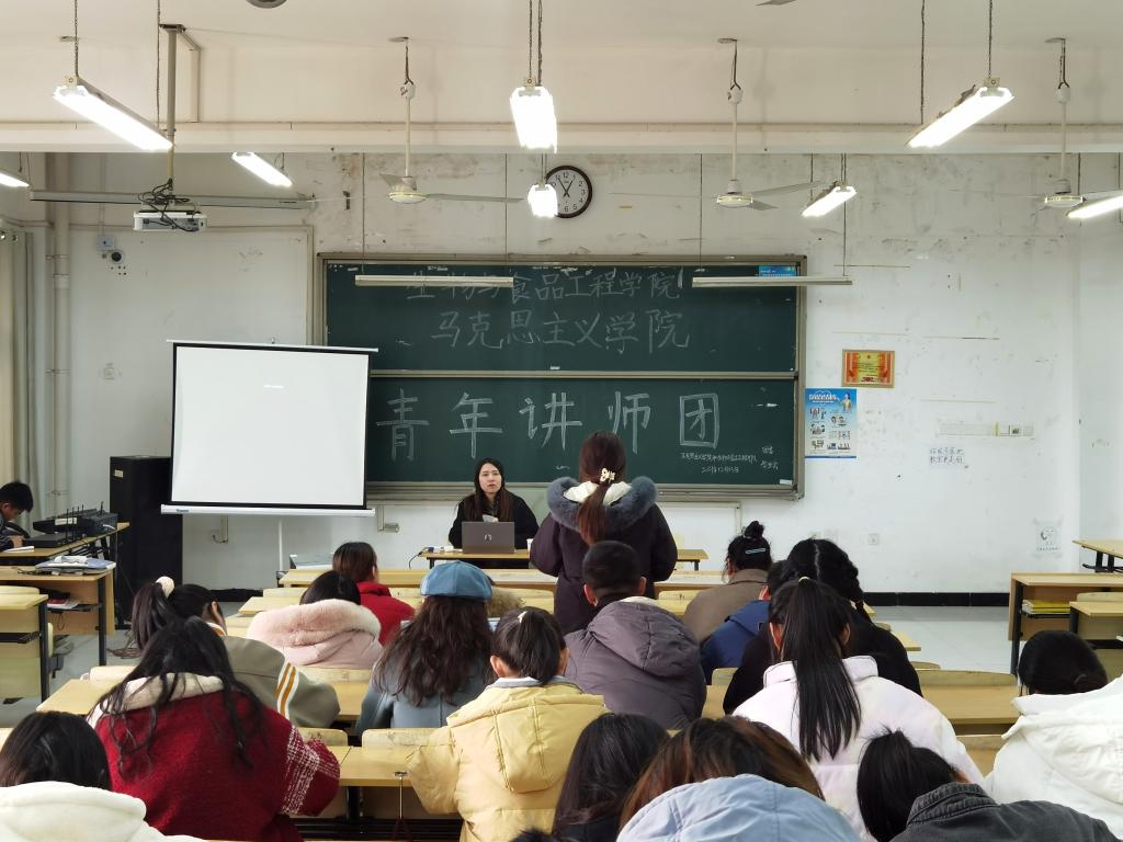为更好贯彻落实党的十九届六中全会精神,加强思想政治引领,引导广大青年坚定不移听党话、跟党走。2021年12月13日中午12:40,阜阳师范大学青年讲师团成员、生物与食品工程学院团委负责人孙乐佳和马克思主义学院团总支负责人宁焱赴生物与食品工程学院开展党的十九届六中全会精神主题宣讲。参加本次活动还有生物与食品工程学院与马克思主义学院学生会主席团、班级团干部和社团负责人。