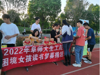 生物与食品工程学院“春蕾计划”九九公益日活动于9月8日和9月9日晚6点至8点在西湖校区第一生活区九栋后操场举行。本次活动的宗旨在于帮助安徽省困境女童筹集助学金,为鼓励同学献出爱心,此次活动儿童基金会为我院提供了相应的礼品。此次活动募捐所得善款将全部由中国儿童基金会用来帮助困境女童。