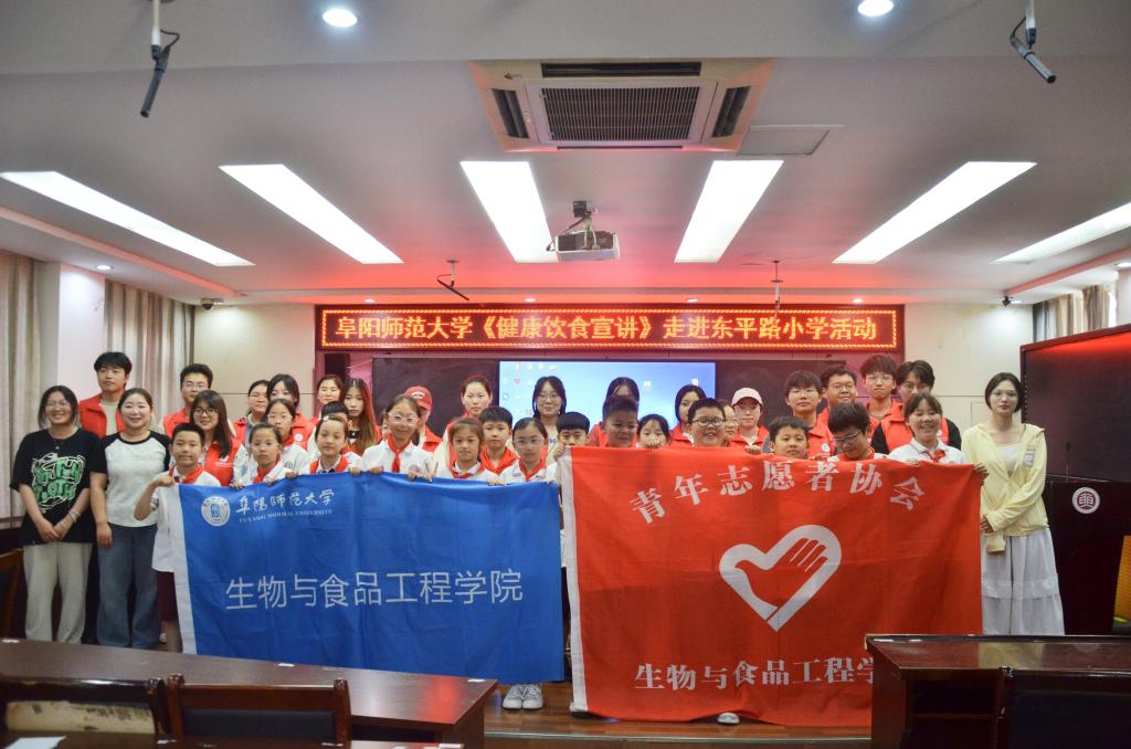 为提高学生们对饮食健康重要性的认识,培养良好的饮食习惯,从而促进他们的健康成长,生物与食品工程学院学生会志愿者与“梦起七彩•奔‘阜’未来”志愿服务队于2024年6月12日下午2点前往东平路小学,开展了以“健康饮食宣讲”为主题的志愿活动。