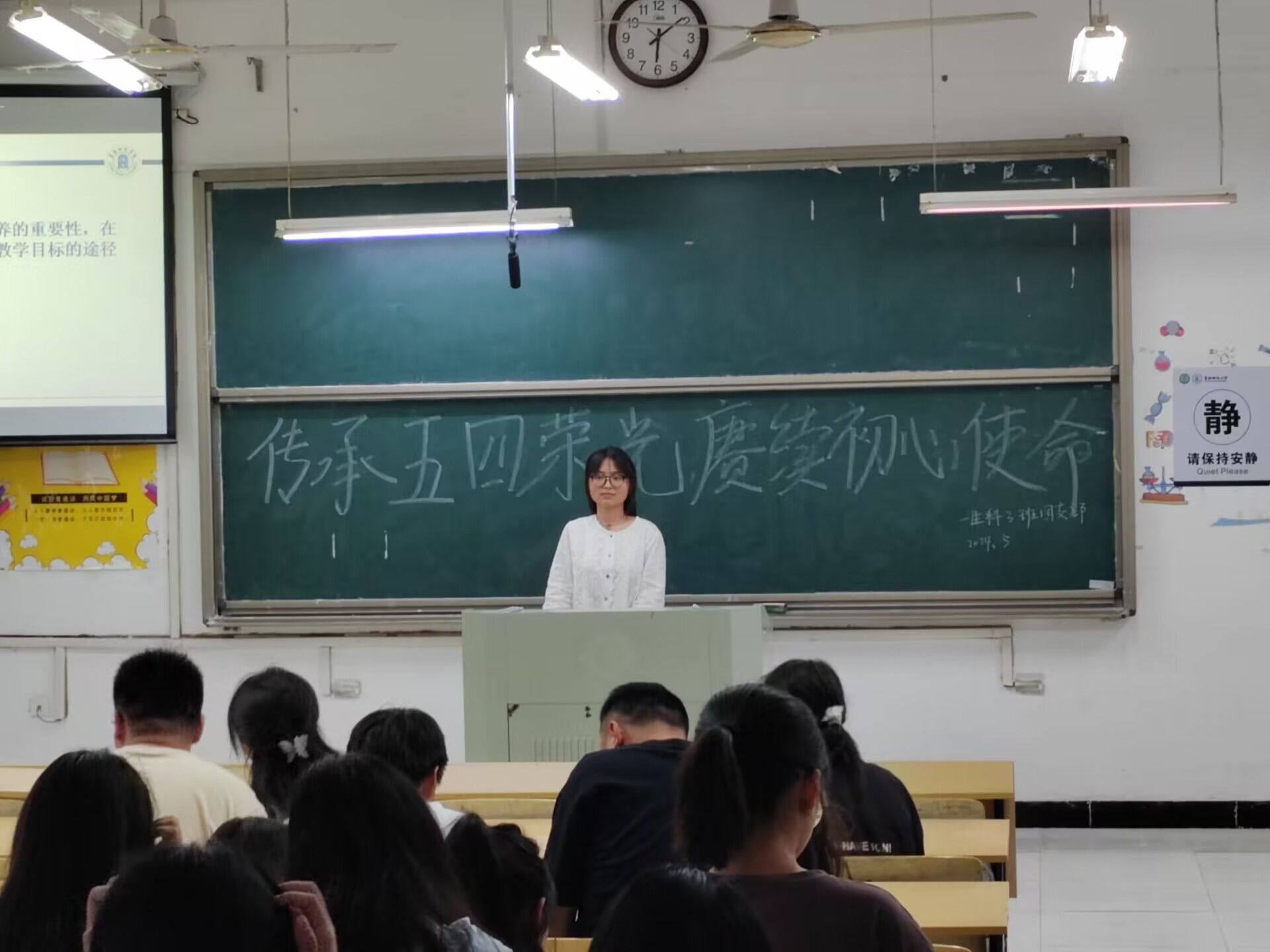 为了弘扬五四精神,激发广大青年爱国热情,凝聚青春力量。2024年5月4日,生物与食品工程学院2022级生物科学(师范)3班团支部于躬行楼D楼206教室开展“传承五四荣光,赓续初心使命”主题教育活动。