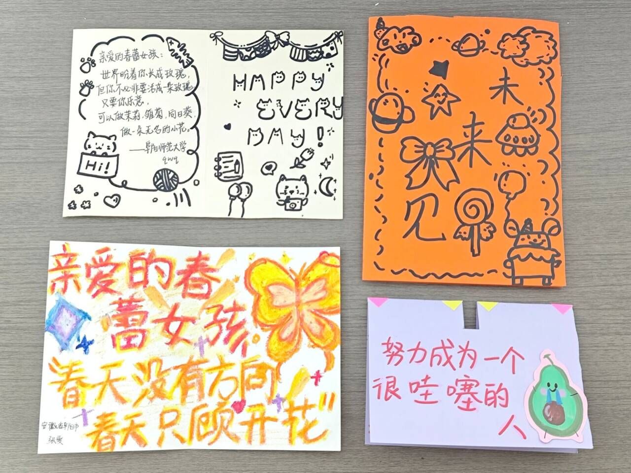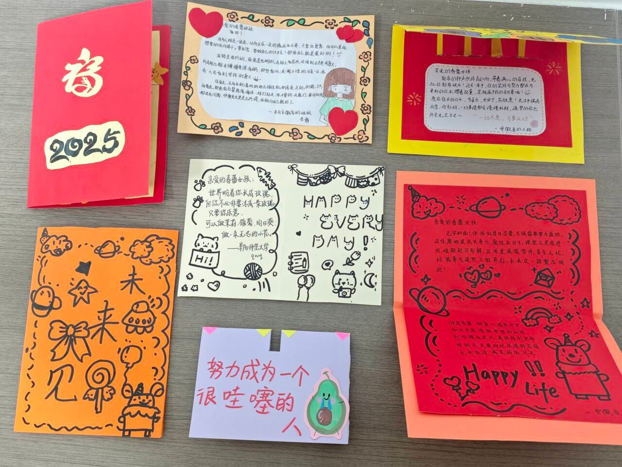 活动自开始以来,得到了同学们的积极响应,收到了许多贺卡。这些贺卡风格各异,但每张贺卡都凝聚着创作者们的心血与对受赠者深深的祝福。