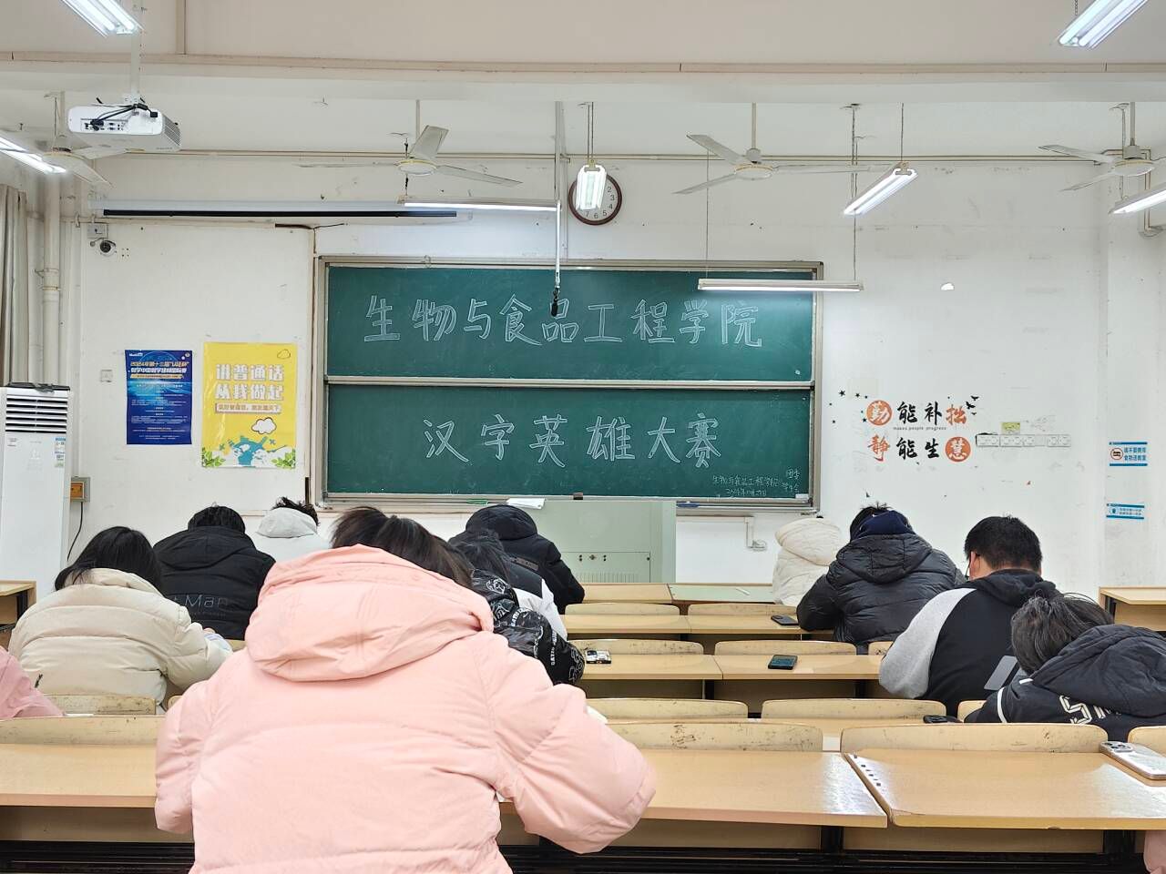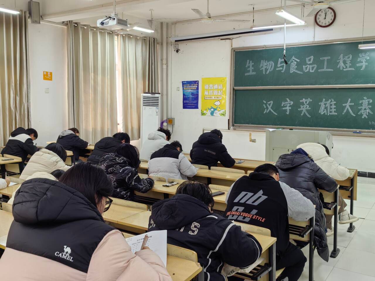 为了让同学们更加深刻的学习和了解中华汉字,阜阳师范大学生物与食品工程学院于12月27日中午12:00在躬行楼d209教室举办了“笔下生花,墨中藏韵”汉字英雄书写大赛。