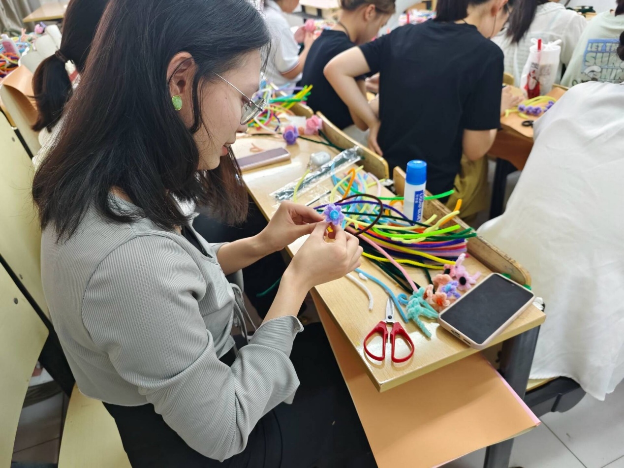 5月19日下午,由生物与食品工程学院心理委员联合会主办的赠美花活动,在阜阳师范大学一区躬行d楼207圆满落幕。活动开始前,由现场工作人员组织参与者进行签到及现场秩序维持工作。随后参与活动的同学可以在工作人员的指导下选择自己心仪的材料制作心中所想的花卉。活动中,各位同学都展现出十足的热情,发挥想象尽情创作,制作出一个个令人满意的作品。活动结束后,所有参与人员展示出自己的作品,并一起拍照合影留念。