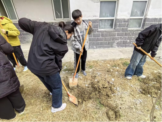 活动开始前,同学们有序地分好组,在领悟到种植植物的要领后迅速投身到植树活动中。植树过程中同学们分工明确、配合默契、欢声笑语回荡在植树场地。此次活动不仅是体力的挥洒,更是心灵的滋养。同学们在与植物的互动中找到了心灵的慰藉和成长的力量。