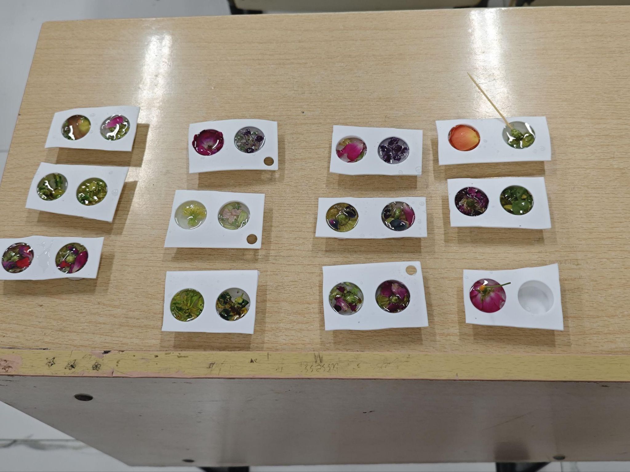 活动现场,时光仿佛被温柔拉长,一片温馨与融洽。参与者们沉浸在大自然的馈赠中,将干花巧妙地拼接在一起,然后滴加胶水,制作成一枚枚独一无二的干花纽扣。每一枚干花纽扣都充满了生机与活力,蕴藏着参与者内心独特的情感世界。在此次活动中,参与者不仅感受到了大自然的神奇魅力,还对自己的内心世界有了更深入的认识了解。