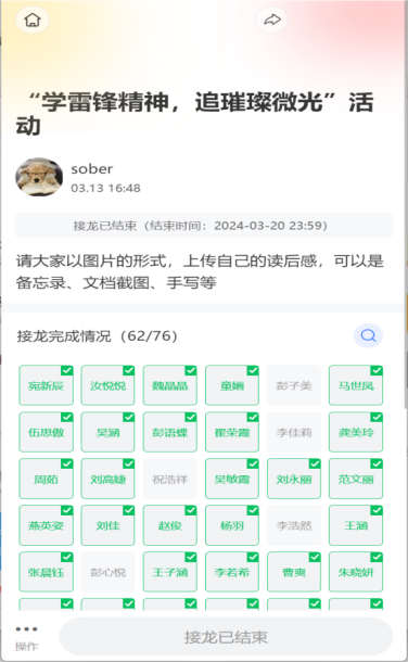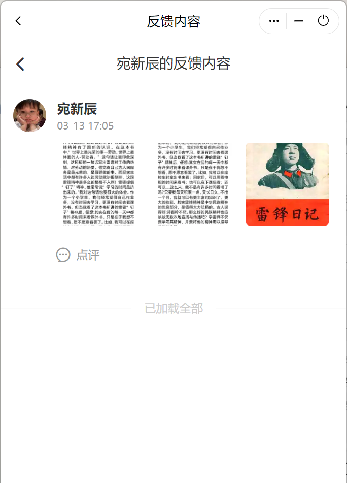 本次活动以“学雷锋精神,追璀璨微光”为主题,形式、内容自由,同学们在3月雷锋月自由观看有关雷锋同志的相关书籍影像,拍下并上传观看照片,在活动结束后提交不少于300字心得。通过这种形式,以此来缅怀雷锋同志,弘扬雷锋精神和“奉献,友爱,互助,进步”的志愿服务精神,提高同学们的人文精神,促进同学们政治思想觉悟的不断提高,传承雷锋艰苦朴素的优良作风。