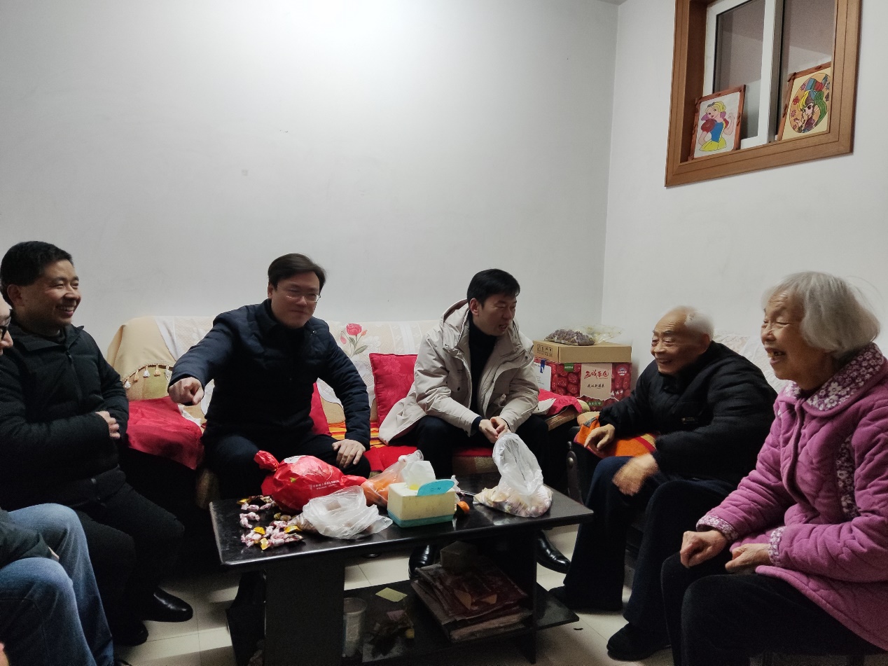 在农历虎年即将到来之际,1月20日上午,生物与食品工程学院党委书记孙华、院长刘勇、副院长唐俊、副书记韩天鹏、分工会主席蔡健、分工会委员赵宏强一行代表全院师生走访慰问了学院退休老教师,送上新春佳节的问候与美好祝福。此次走访慰问的离退休老教师包括近90岁高龄的储可敏老师,曾担任生物系主任的尚亚南老师、原生物教研室主任董金廷老师和徐桂玲老师。