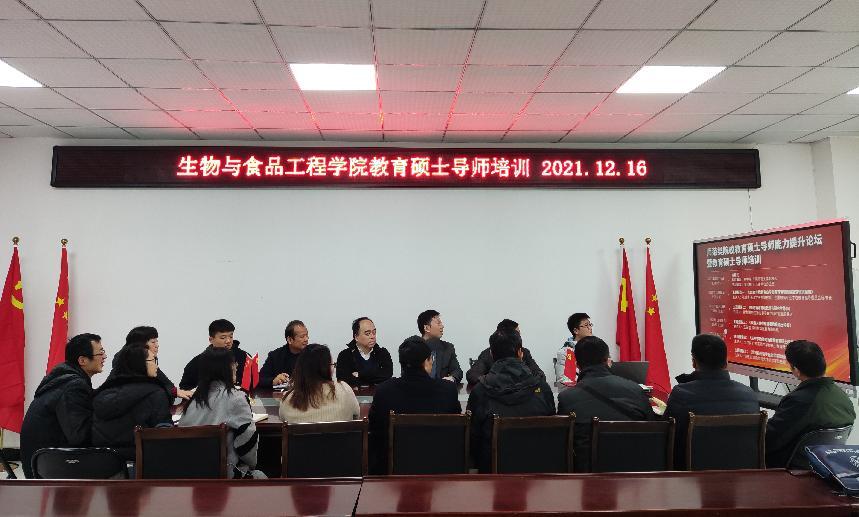 为贯彻落实全国研究生教育会议及教育部《研究生导师指导行为准则》及相关文件精神,进一步加强研究生导师队伍建设,切实保障教育硕士培养质量,12月16日,在躬行楼E302会议室,生物与食品工程学院组织全院教育硕士导师参加师范类院校教育硕士导师能力提升论坛暨教育硕士导师培训线上会议。学院院长刘勇教授、副院长唐俊教授等近20位教育硕士导师参加了培训会。