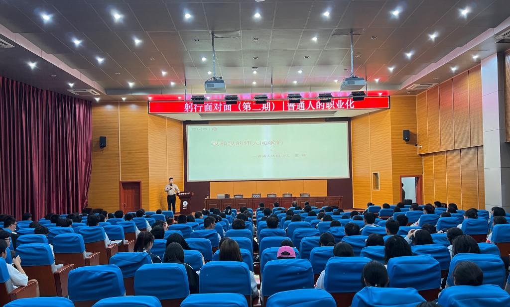 讲座中,王强以“我和我的师大同学们-普通人的职业化”为题,以“梦想的力量”为切入点,分享了自己在校期间的学习经历和毕业后的就业创业经历,阐述了创业过程中应注意的几个关键要素,包括对“创业前瞻性”的探索、对“个人核心竞争力“的探讨、“自愈力”的培育、“成长需要时间”及“团队合作的力量”。王强认为,职业发展中要有远见和计划,要尽早做好职业生涯规划,在未来发展道路上明确目标,不断提升自身核心竞争力,勇于尝试、敢于创新,并强调了持续学习和不断积累经验在创业过程中的重要性。讲座最后,王强表达了对同学们的殷切希望与祝福。