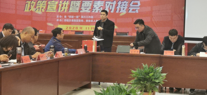 11月10日上午,阜阳市颍东区“四送一服”专项行动政策宣讲暨要素对接会在徽清科技园二楼会议室召开,颍东区财政局(区金融办)、区科技局、区投融资管理中心、区经信局、区发改委、区农业农村局、区人社局、颍东自然资源和规划分局、开发区管委会分管负责同志及企业代表70余人到会。