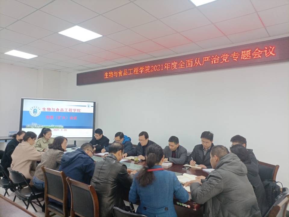3月26日,生物与食品工程学院党委召开2021年全面从严治党专题会议,传达学习上级有关会议精神,回顾总结去年全面从严治党工作情况,对今年工作任务作出安排。学院党委书记孙华主持会议,学院班子成员、处级干部、党委委员、各支部班子成员及辅导员等参加会议。