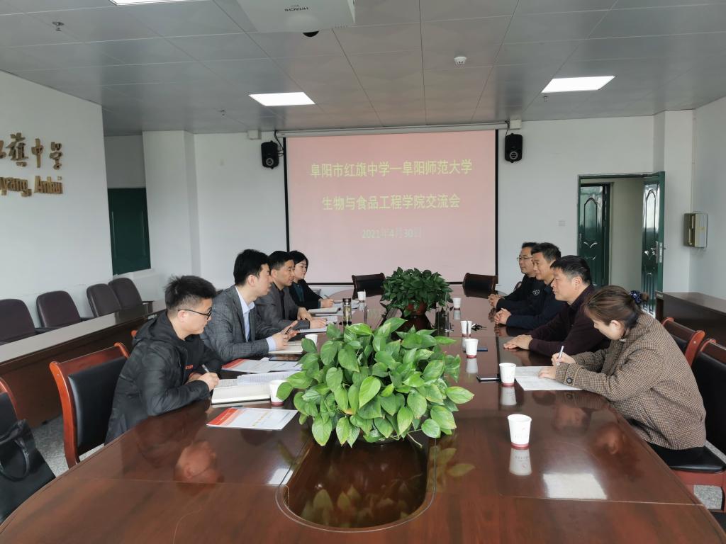 为进一步加强学科教学(生物)专业学位硕士点和生物科学(师范)本科一流专业建设,做好师范专业认证、研究生、本科生三习等工作,进一步加强与实习基地沟通联系,发挥实习基地在实践教学、就业见习等过程中的作用,2021年4月30日上午,生物与食品工程学院院长刘勇、副院长唐俊、生物系主任任莉萍、研究生秘书韦兵等一行赴阜阳市红旗中学开展调研。阜阳市红旗中学常务副校长陈荒龙、教务主任刘燕飞、生物组组长刘梅及生物教学骨干教师等参加了交流活动。