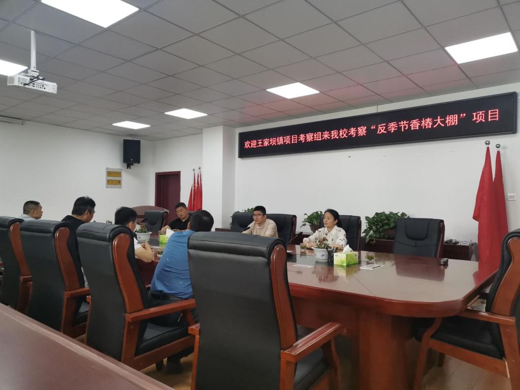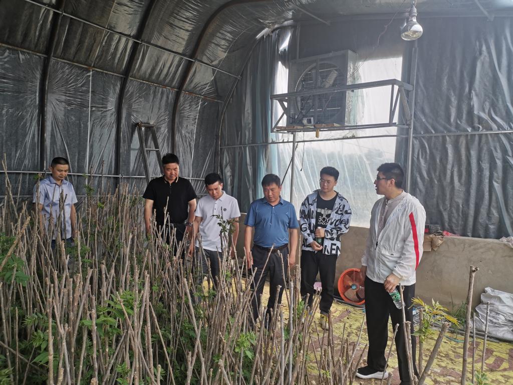 崔站长一行先来到阜阳市轩露苗木种植有限公司香椿矮密化种植基地考察香椿大棚的栽培情况,随后,抗衰老中草药安徽省工程技术研究中心副主任屈长青、学院分团委负责人李婷婷、阜阳市轩露苗木种植有限公司贾云露总经理在生物与食品工程学院二楼会议室进行了座谈。屈长青对崔站长一行的到来表示热情欢迎,并简要介绍了矮化密植反季节香椿大棚项目。崔站长一行指出,王家坝镇积极谋划健康可持续的产业项目,并表示希望能借助于阜阳师范大学生物与食品工程学院师资力量、技术开展项目的联合攻关。随后,双方围绕香椿生产技术、深加工和合作进行了深入讨论。