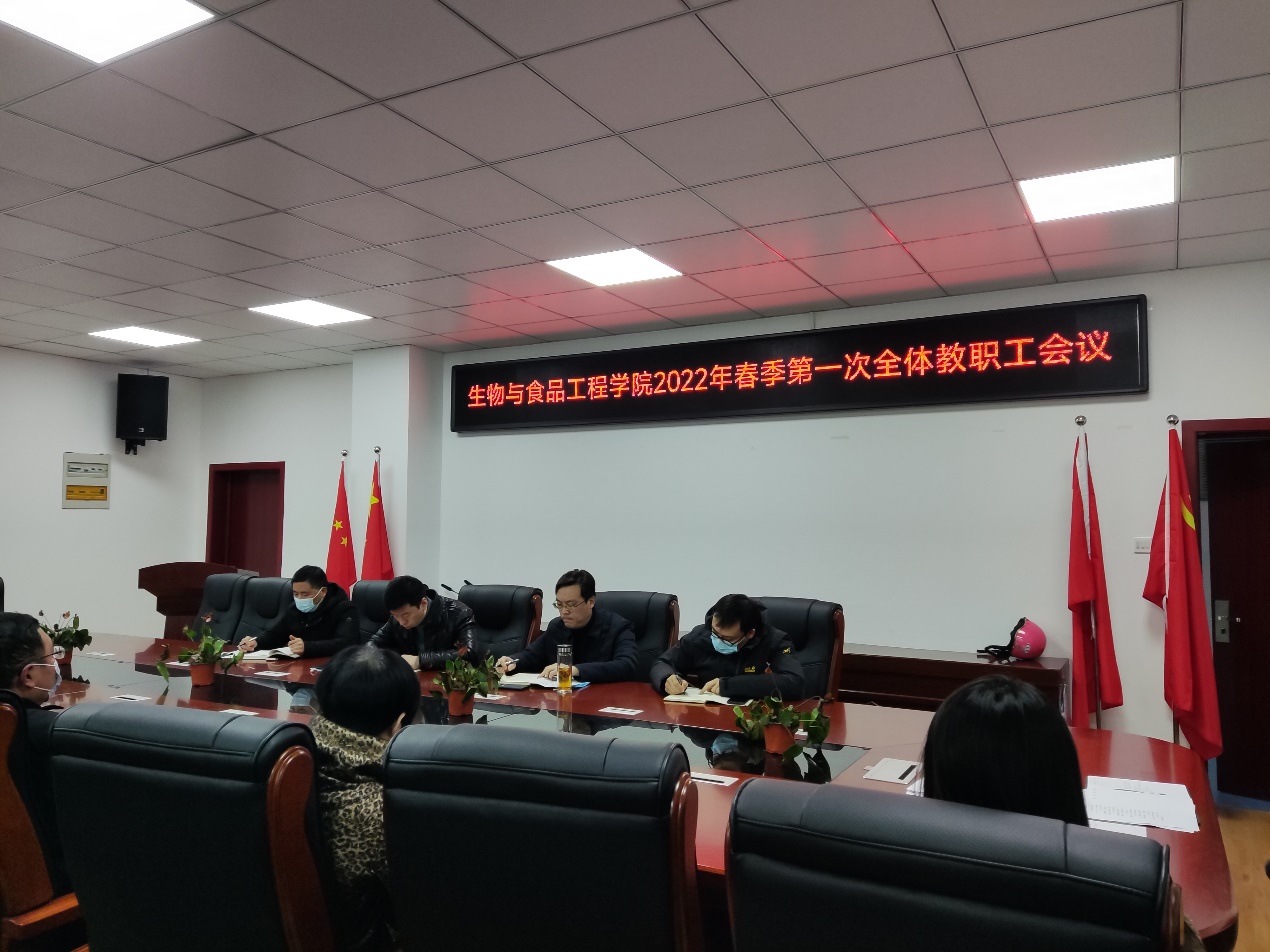 会议开始,孙华首先回顾了2021年生物与食品工程学院党建工作的基本情况,全面总结了学院过去一年围绕立德树人根本任务,在人才培养、科学研究、学科建设以及师资队伍建设等方面取得的成绩。他强调,院党委将以更高的政治站位和政治自觉,以党建高质量发展推动学院事业高质量发展。刘勇在接下来的会议中对生物与食品工程学院学科建设方向和规划作了进一步展望。之后唐俊对即将开始的新学期,进行了教学工作的部署。(撰稿、图片:赵宏强)