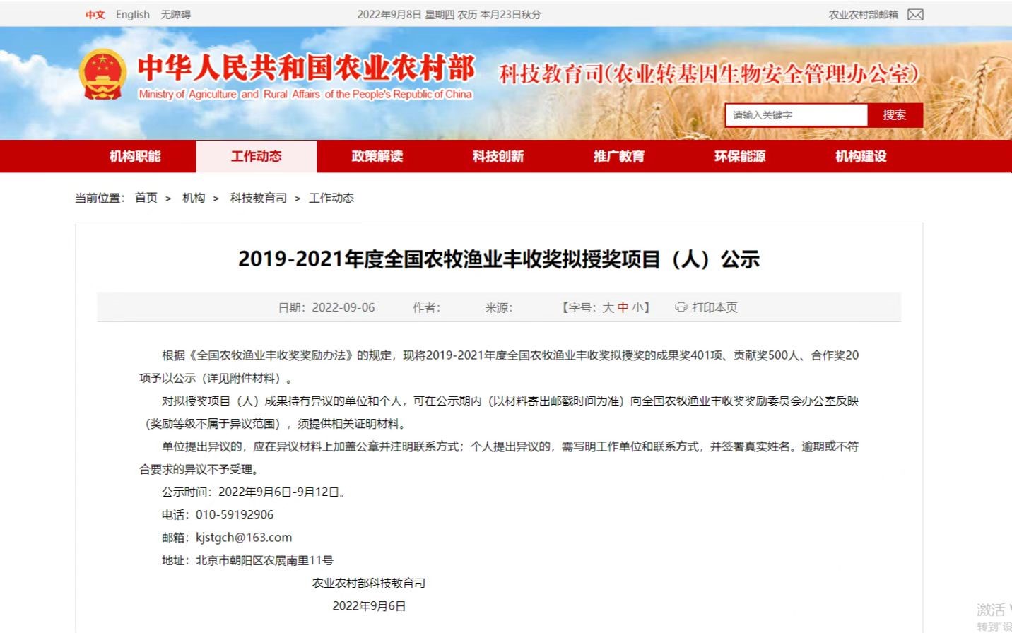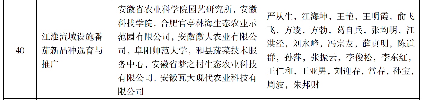 近日,中华人民共和国农业农村部科技教育司发布了《2019-2021年度全国农牧渔业丰收奖拟授奖项目(人)公示》,其中市校合作科技专项《皖北设施茄果类蔬菜新品种及关键技术研究与示范》首席专家严从生研究员申报的《江淮流域设施番茄新品种选育与推广》荣获农业技术推广成果奖一等奖。阜阳师范大学作为项目合作主要完成单位排名第5,负责项目中新品种在阜阳及周边地区的示范推广工作以及项目中的相关咨询与指导工作。项目合作企业安徽瓦大现代农业科技有限公司也是项目合作主要完成单位之一。