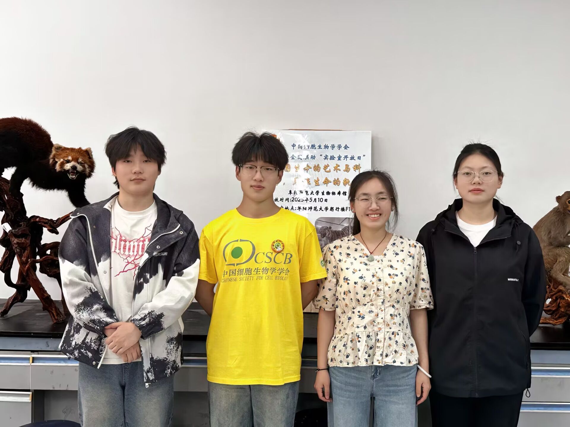 为响应中国细胞生物学学会2025年全国“实验室开放日”倡议活动,5月1日,阜阳师范大学生物与食品工程学院生物标本馆联合动物保护协会组织学生讲解员,以“凝固生命的艺术与科学 见证生命的轨迹”为主题,依托学生自制各类生物标本,借助线上线下融合的创新形式,将生物多样性保护知识传递给大学生。