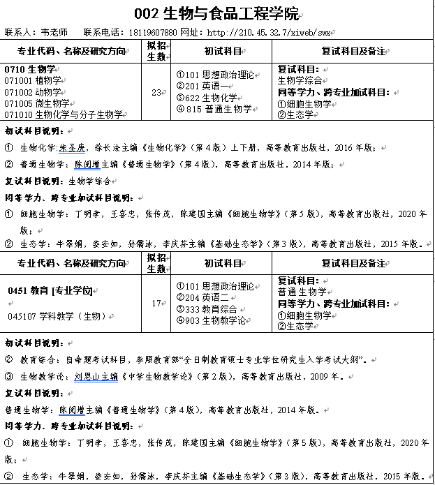 培养目标:培养掌握具有坚实的基础理论、现代的教育观念和创新的教学工作能力,能够从事基础教育领域生物学科教学工作,并具有良好的教师职业素质的高层次应用型专门人才。