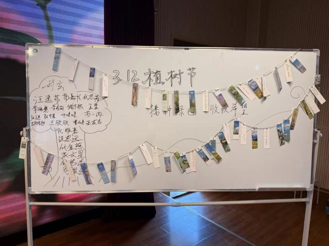 活动现场,我院团委学生组织准备了丰富的制作材料,让大家发挥创意,精心设计出一张张独具匠心的植树节主题书签。有的同学在书签上写下环保倡议,有的绘制绿色图案,以此表达对环境保护的支持与承诺。活动过程中,同学们还在签名墙上写下了自己的名字。大家在书签上“种”下了对自然的祝福,在签名墙上留下了对地球的承诺。一张张青春洋溢的笑脸,一枚枚充满创意的书签,成为这个植树节最温暖的风景。
