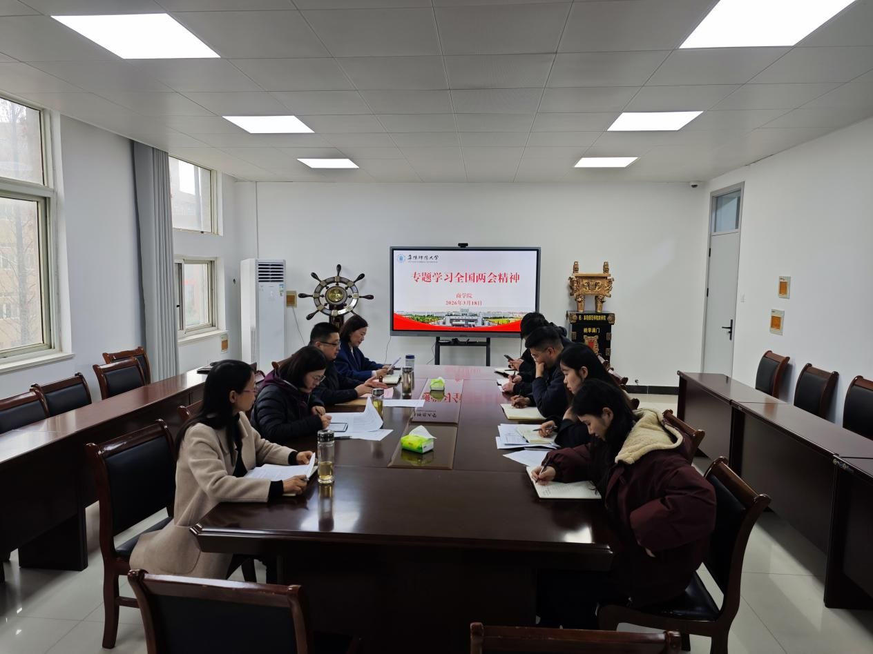 3月18日,商学院党委理论学习中心组召开2026年第3次集中学习会,专题学习全国两会精神。院党委委员、各党支部书记、教研室主任、群团负责人参加会议,会议由院党委书记宋东锋主持。