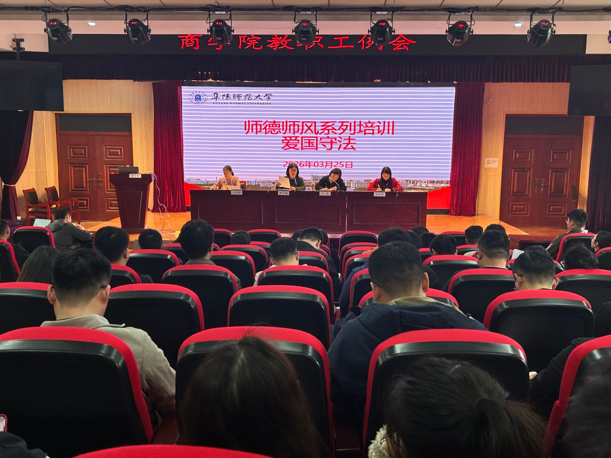 3月25日下午,我院启动本学期师德师风系列专题培训工作,首场以“爱国守法”为主题,面向全体教职工开展集中培训。