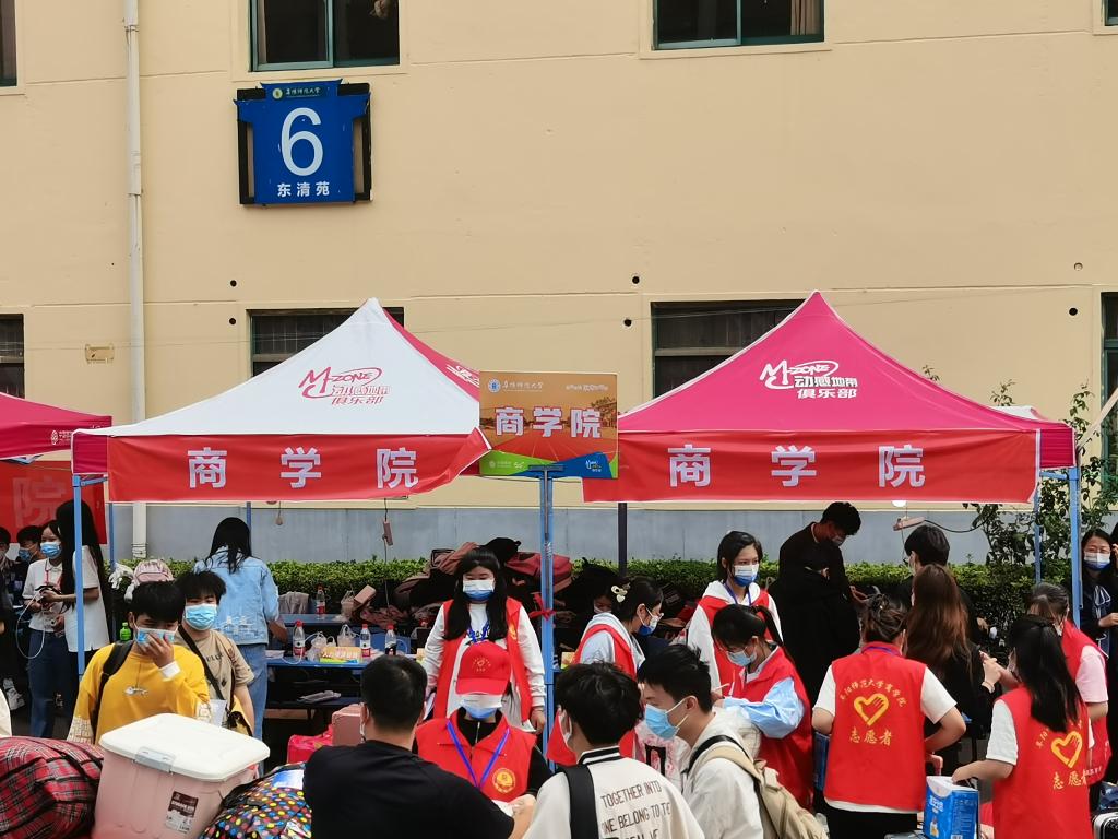 温情迎新,志愿服务伴随行。学院不断优化迎新志愿者“招募-培训-激励”联动机制,共招募86名高年级学生党员、班团干部、学生骨干帮助新生做好报到注册、行李搬运、信息咨询等工作。学院统一制作行李贴,对新生行李进行贴签标号后集中运送至学生寝室,保证了迎新工作的有序开展。“阜师四年情深谊长,商院陪你来日方长”“确认过你的眼神,皆是我的新‘商’人”等横幅寄语鼓励新生热爱学校、热爱学院、热爱专业、热爱生活,以商院为家,踔厉奋发、笃行不怠,以崭新的面貌迎接大学生活。