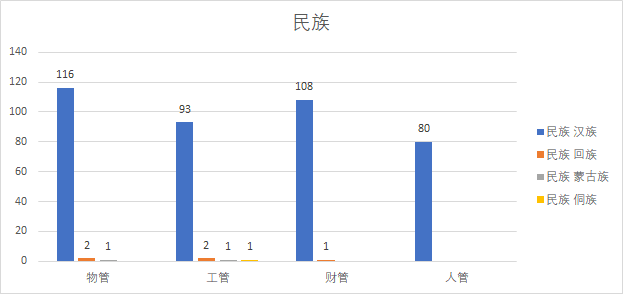 民族团结一家亲,同心共筑商学院。除了397名汉族之外,还有回族、蒙古族和侗族等民族的小伙伴们。