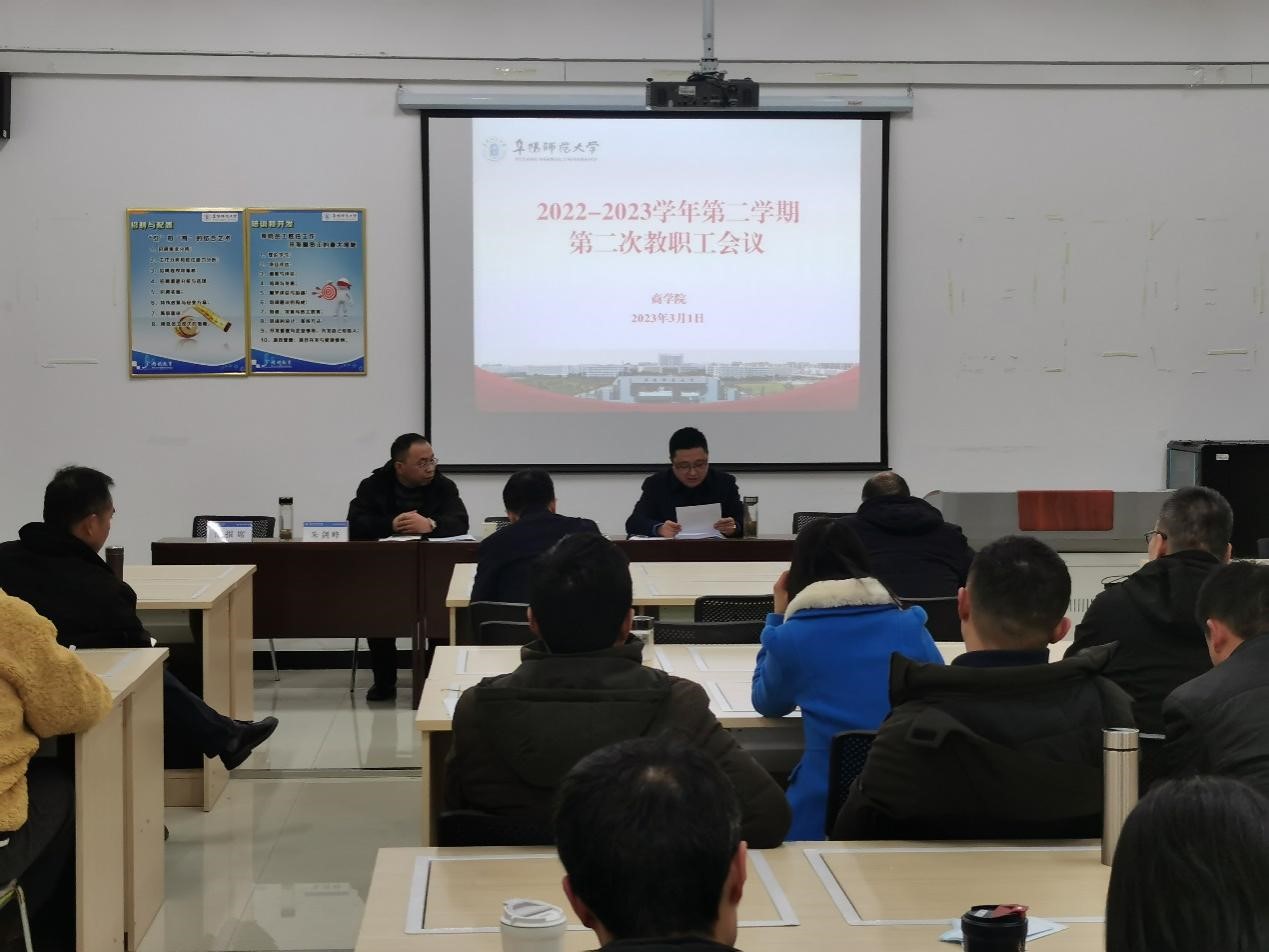 3月1日下午,我院召开本学期第二次全体教职工会议。会议由院党委书记宋东锋主持。
