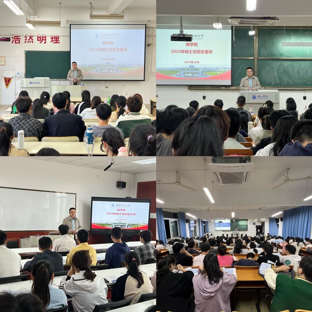 每到一所高校,宋东锋详细介绍了我校的办学历程以及商学院学科与学位点概况、研究生培养成效和就业情况,重点介绍了工商管理一级学科硕士点、会计专硕等两个学位点初试、复试科目设置情况,特别是我校关于研究生的奖助政策等内容,鼓励广大同学积极报考。相关专业考研学生积极参加宣讲会,并就考研报考中的一些细节踊跃提问,学院研究生工作秘书赵玉老师一一给予了细致解答。