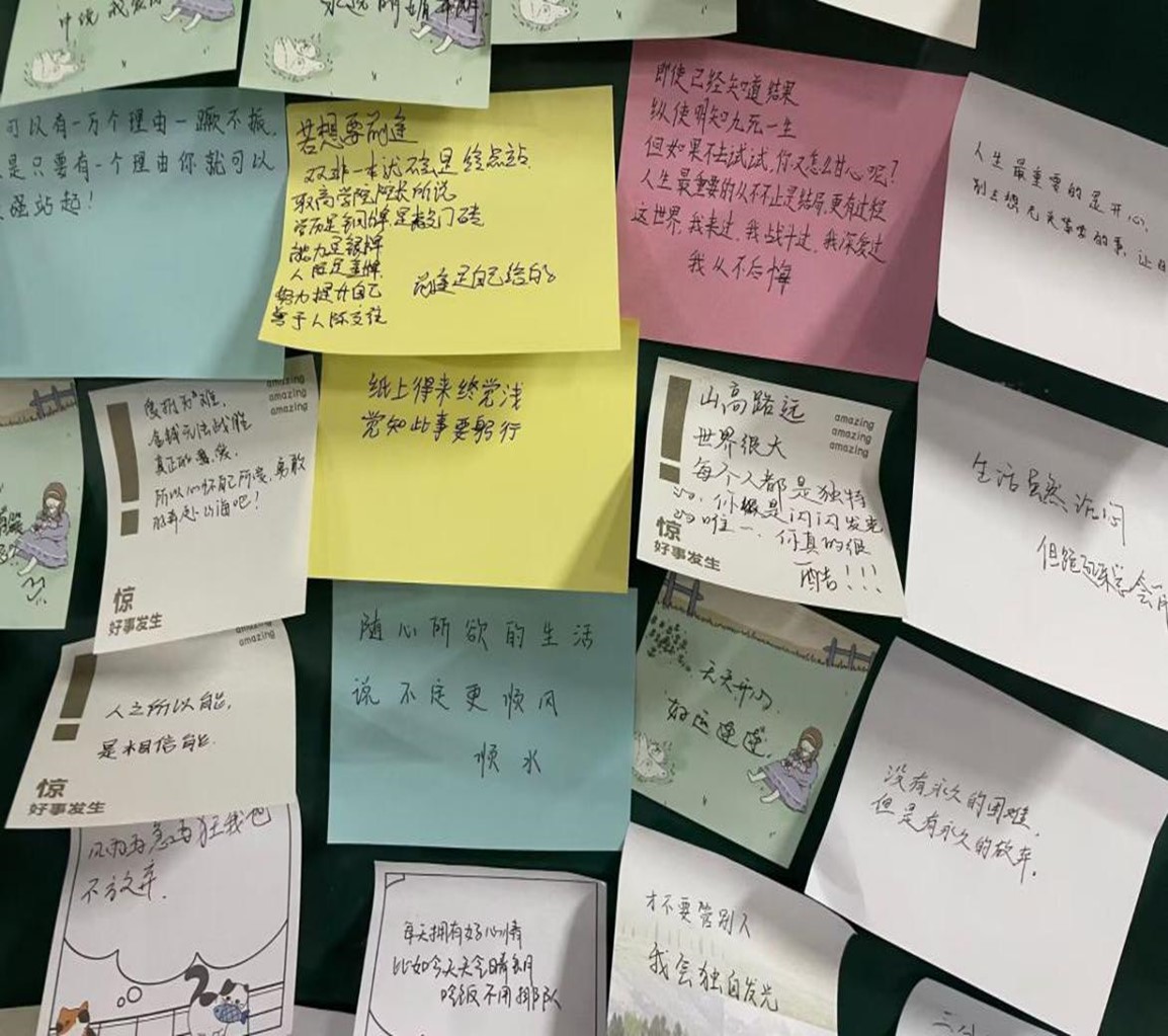 鼓励与温暖的话语很快填满了整个展板,汇成了一股股暖流,缓缓流淌在每个同学心中。参加活动的同学们表示,“生活中我们经常被贴上各种标签,但是我们本不该被“定义”。世界很大,每个人都是独特的个体,是闪闪发光的唯一。”