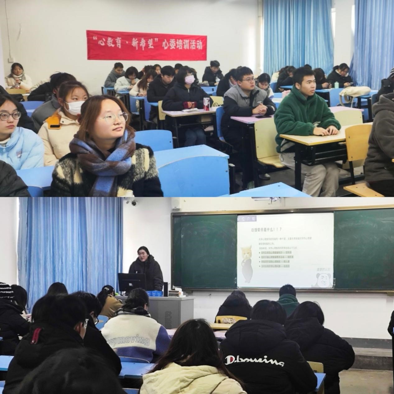 聚焦“用”,发挥朋辈育人功能。为检验本次培训成果,引导各班心理委员在体验、学习的同时,能够应用所学内容,提升实践能力,更好地为同学们提供心理支持和帮助,12月中旬,各班心理委员根据培训内容开展相关主题班会。各班心理委员纷纷表示,在今后的日常学习和生活中会更加积极地关注自身和同学们的心理状态,做同学们的知心朋友。