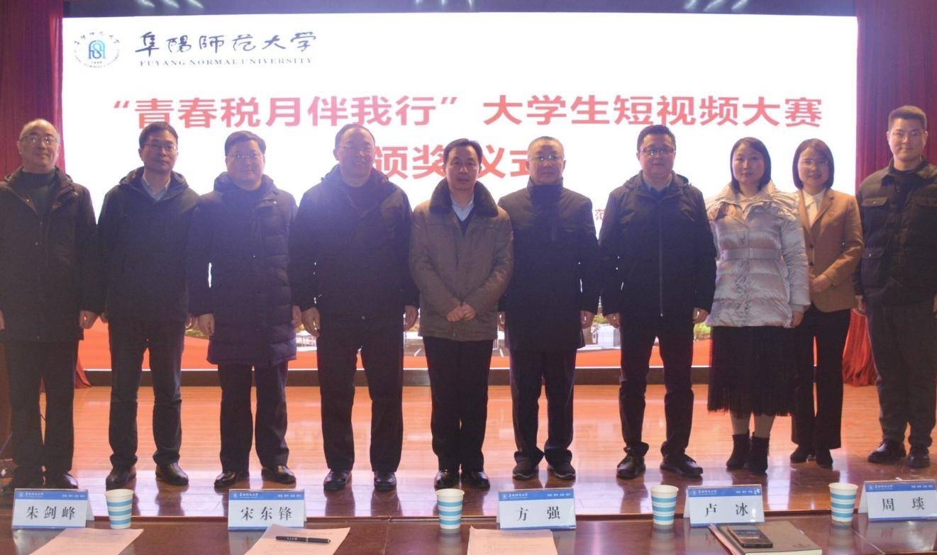 由国家税务总局阜阳市税务局与招生就业处主办、国家税务总局阜阳市颍州区税务局和商学院承办的“青春‘税’月伴我行”大学生短视频大赛在圆满完成赛事活动后,于12月29日下午举行表彰颁奖仪式。主办、承办单位有关领导及来自全校8个二级学院、19个获奖团队成员参加此次仪式。仪式由我院副院长张士连主持。