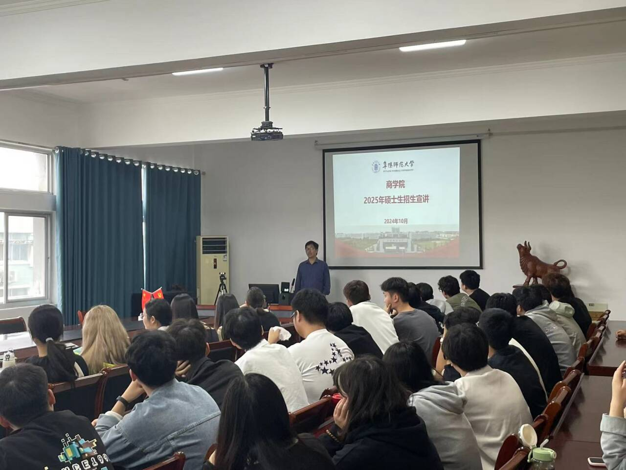 在池州学院、皖西学院及安庆师范大学,招生宣讲团队就我院历史底蕴、师资队伍、研究交流、考研形势、报考策略、学科特色、招生与培养政策、奖助制度、就业与环境等方面进行宣讲,重点对学院学科特色、科研平台、导师队伍、研究生招生与培养等情况作详细说明,充分展示了我院师资队伍、科研学术水平和研究生培养的亮点和特色。会后进行现场交流,宣讲团队耐心地对同学们提出的疑问进行详细解答。