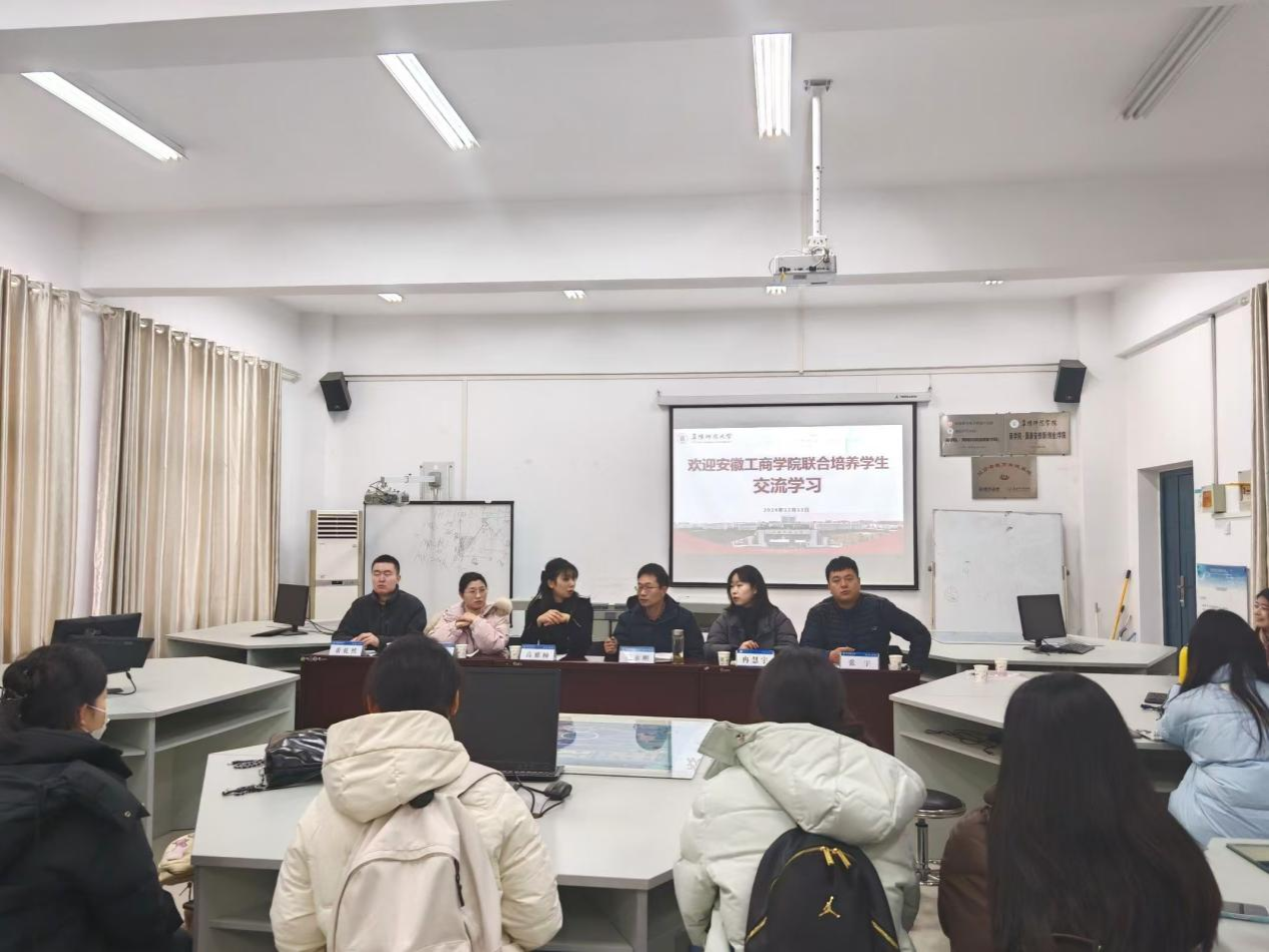 调研交流期间,双方分别召开师生两个组别的座谈会,围绕联合培养学生工作、党团建设、专业人才培养方案、毕业论文、学生服务保障等开展深入研讨交流。联培学生还参观了校史馆,安徽工商职业学院管理学院领导、老师旁听了物流管理本科生的专业课程。