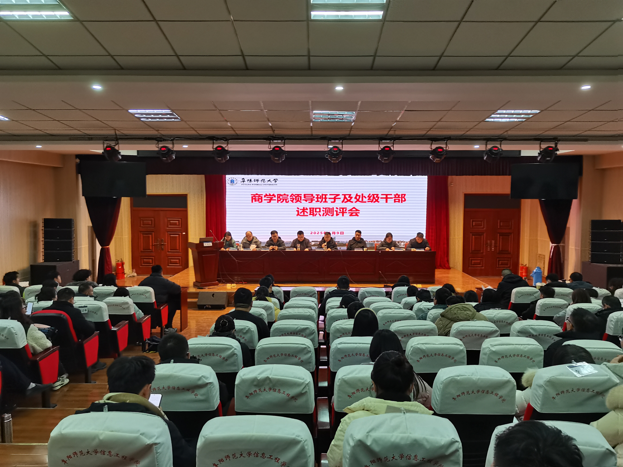 1月9日下午,我院召开全体教职工会议,进行领导班子及处级干部述职评议工作。学校综合考核第二考核小组到会实施考核,会议由院党委书记宋东锋主持。