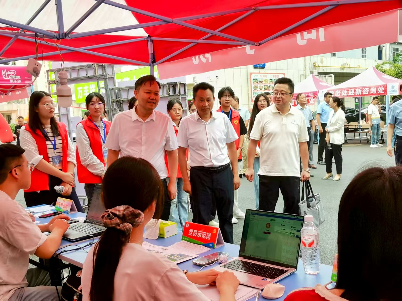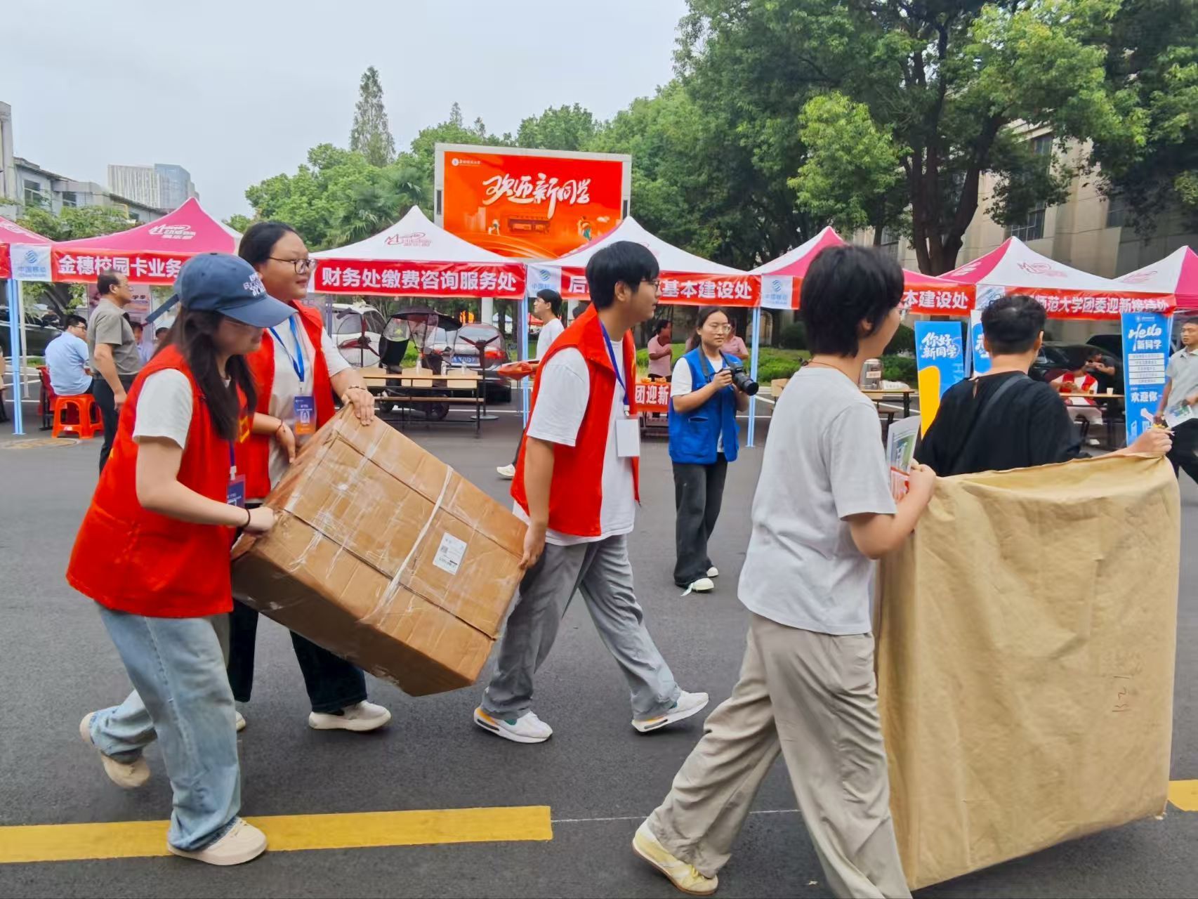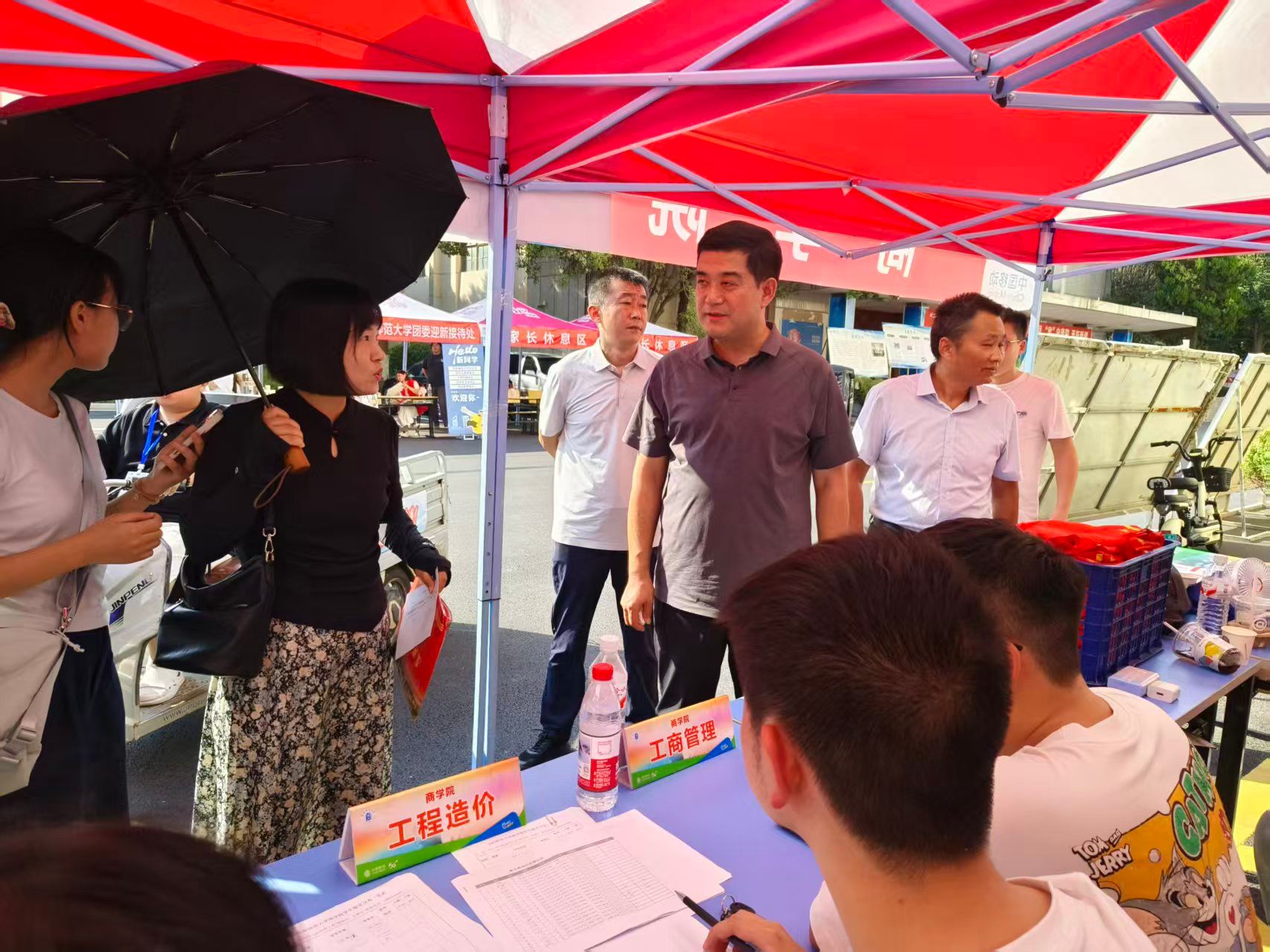 在“服务暖心”上发力,传递校园关怀“温度感”。为全力打造热忱暖心、服务周到、保障有力、秩序井然的迎新服务环境,9月3日,学院召开2025年迎新志愿者培训会。报到当天,志愿者们主动上前接过新生手中的行李箱,一边帮着搬运行李,一边耐心讲解宿舍位置、食堂分布等信息,用热情的笑容与细致的引导缓解新生初来乍到的陌生感;期间突降大雨,学院将提前备好的雨衣第一时间发放到新生及家长手中,用“雨中送暖”的及时行动驱散雨水带来的出行不便。9月7日下午,学院党委书记宋东锋、院长张雪梅、副书记王永刚带领相关辅导员逐一走访新生宿舍,了解掌握他们的思想动态和需求建议,反复叮嘱“有困难及时向学院反映,学院会尽全力解决”,同时提醒注意宿舍用电及消防安全、尽快融入集体,并为新生送上含有军训水杯、文具袋等的生活礼包。
