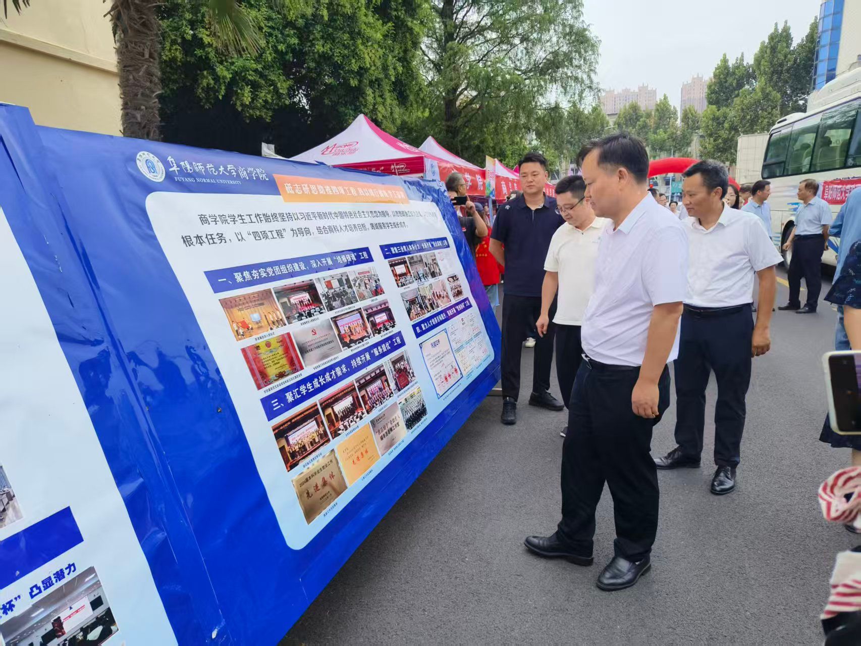 在“指引贴心”上发力,点亮新生入学“导航灯”。学院聚焦新生入学“疑惑点”,在学院网站及公众号开通“2025迎新季”专题,专题施行“文字指南+数据画像”双轨并行方式,于8月31日发布《致2025 级新“商”人的一封信》;9月3日发布《一见倾“新”,2025级新同学请查收辅导员暖心寄语》;9月4日发布《我院2025级本科新生数据新鲜出炉!》;9月5日发布《叮~“商小团”带你玩转报到》,为新生提供清晰、全面的入学指引。迎新现场,学院精心设计制作了学生工作、团学工作、心理工作展板、横幅以及新生姓名构建的桁架,生动展示学院办学理念、学科特色、校园文化及优秀学子风采,让新生和家长在报到的同时就能直观了解学院的育人氛围与精神风貌。