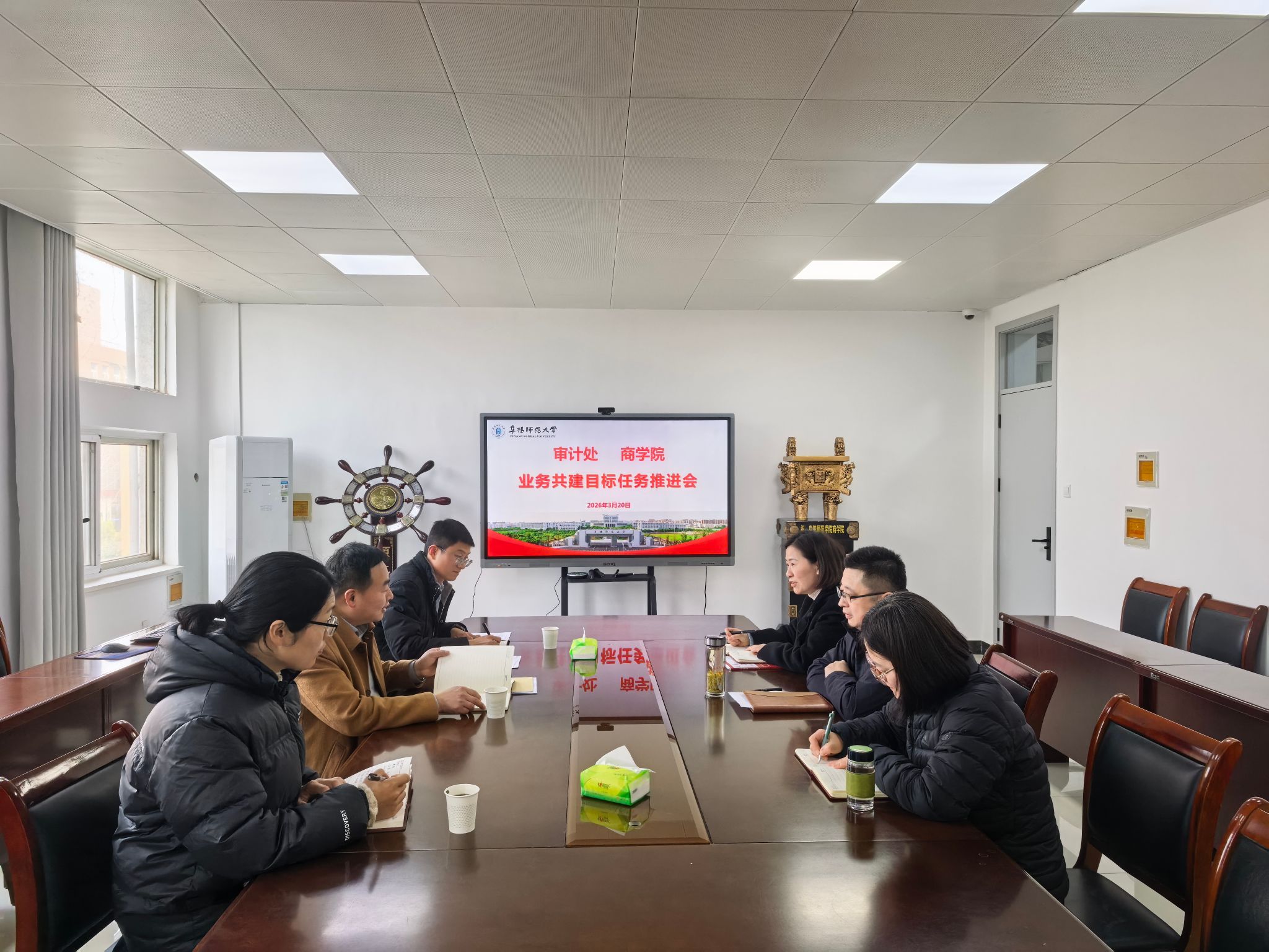 3月20日下午,校审计处处长杨怀伟等一行3人莅临我院,联合召开业务共建目标任务推进会。学院党委书记宋东锋、院长张雪梅、副书记王萍参加会议。会议由宋东锋主持。