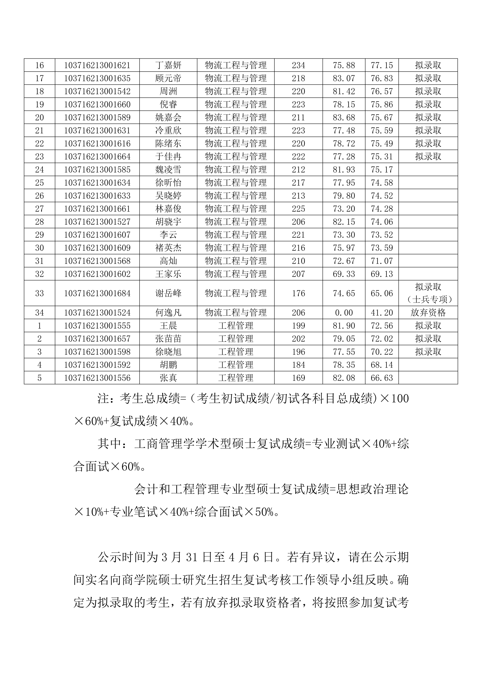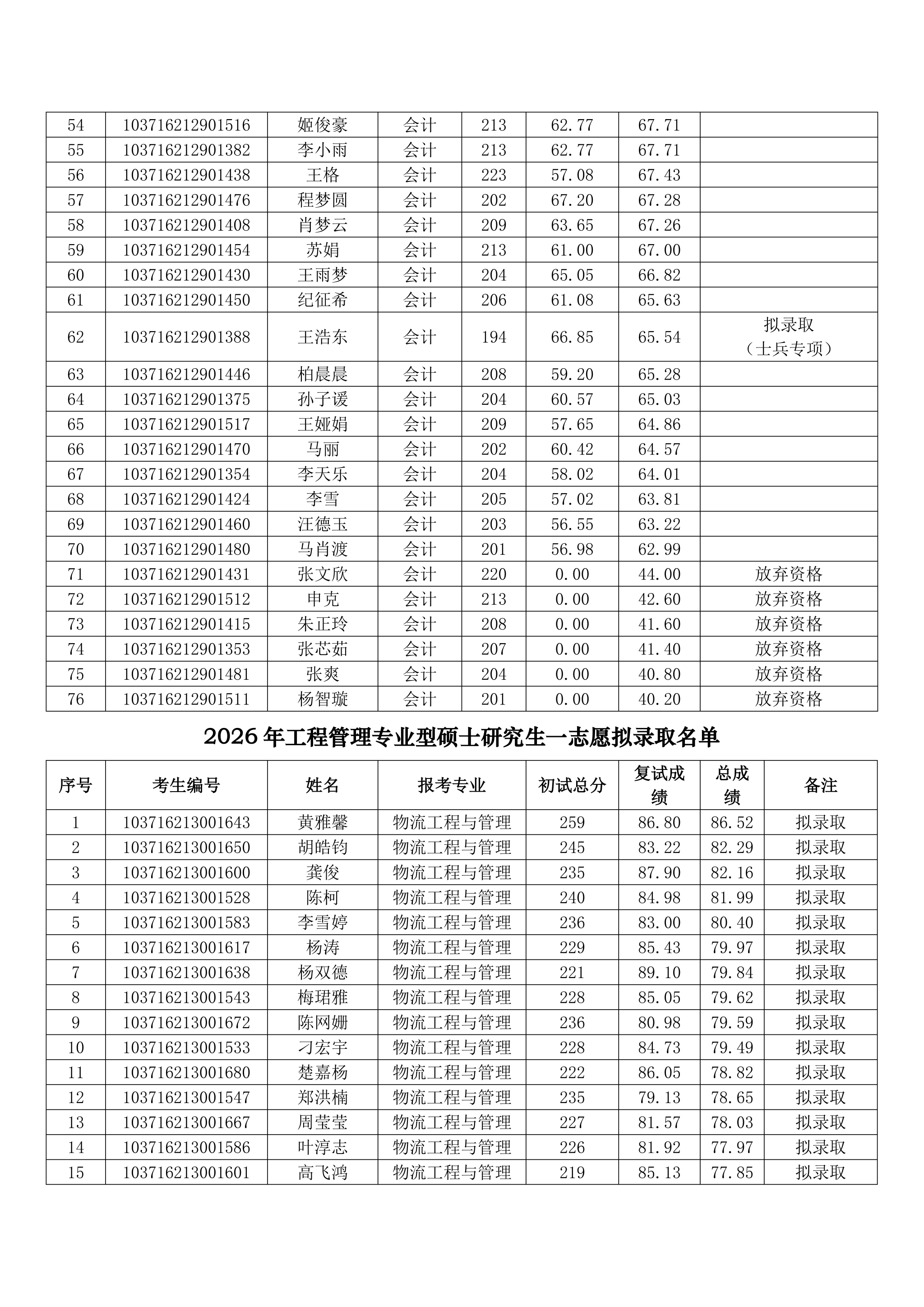 商学院2026年全日制硕士研究生第一志愿拟录取名单公示
