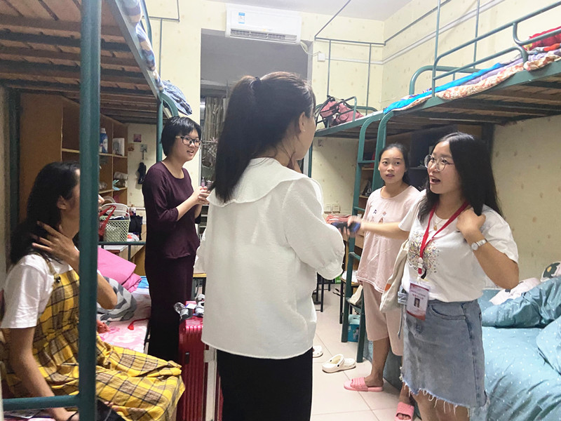 迎新报到当晚,学生党员们进入新生寝室与同学们亲切交流。他们关切地询问了新生到校的适应情况,了解了新生的想法,并对新生提出的相关生活问题进行了悉心的讲解和认真的记录,同时提醒新生注意寝室安全,提高安全意识,认真落实晨午晚检制,叮嘱新生要时刻注意气候变化,适时增减衣物。