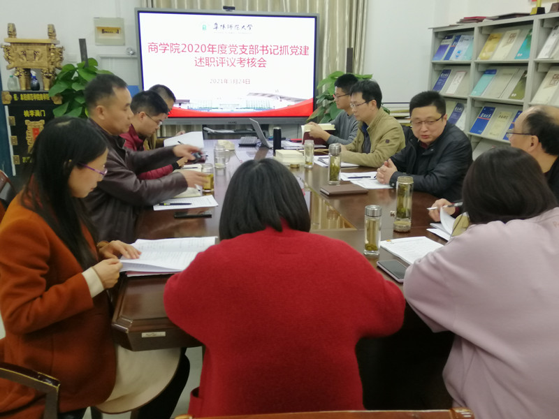 3月24日下午,商学院召开院党委扩大会议,对2020年度党支部书记履行全面从严治党责任和抓基层党建工作进行述职评议考核,学院党委班子成员、各党支部书记、支部委员和师生党员代表参加会议,会议由院党委书记宋东锋主持。