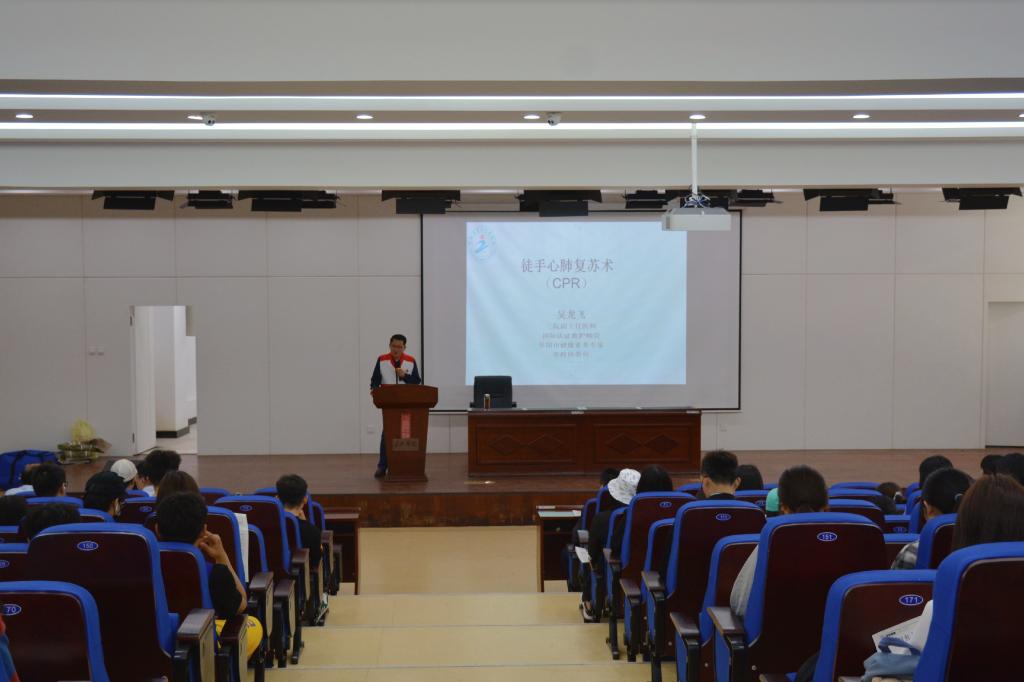 下午3:00,阜阳市第二人民医院急救分站主任吴龙飞、阜阳市红十字会应急救护培训中心主任郭娟来到我校文科实训楼报告厅,为学院学生作应急救护知识专门培训。他们结合近几年发生的学生心肺骤停案例与应急救治的成功经验,采取现场模拟演示的方式,宣讲了心肺复苏理论和操作的重要程度、抢救黄金时间、紧急处理原则以及急救方法等内容,教育引导学生提升了应急救护能力。阜阳市红十字会工作人员还现场发放了红十字会知识宣传单,让广大师生在活动中进一步学习了红十字会在疫情防控期间的先进事迹和感人故事。