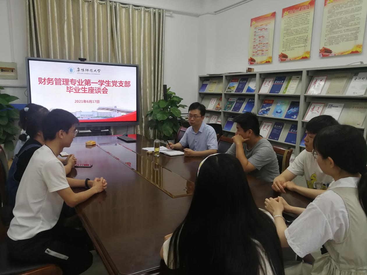 在庆祝建党100周年之际,在毕业生即将踏入社会之时,结合商学院“我为师生办实事”工作要求,6月17日下午,商学院财务管理专业学生第一党支部在305会议室召开2021届毕业生学生代表座谈会。支部书记王永刚,财务管理专业毕业生学生代表参加会议。