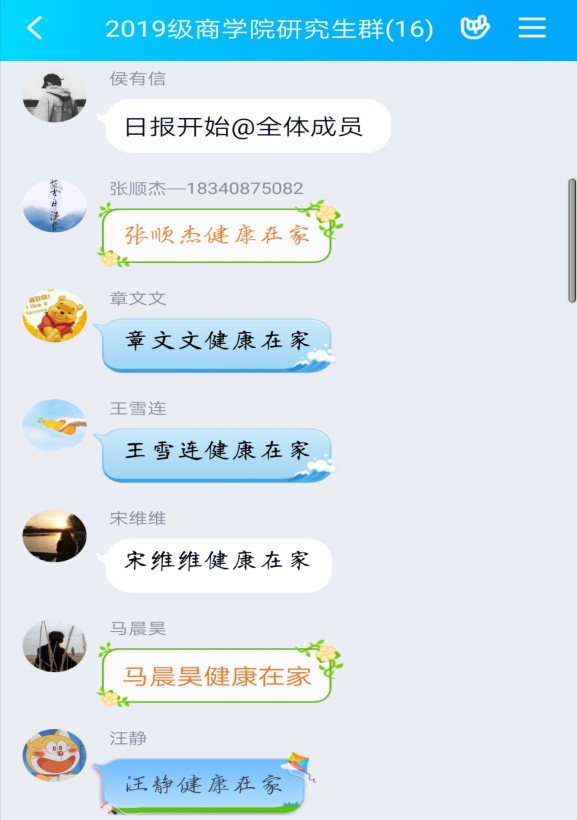 疫情就是命令,防控刻不容缓。商学院迅速成立了防控新冠疫情工作领导小组,党政领导直接牵头,全院教职工广泛参与疫情防控工作。学院对在籍144名硕士研究生全面摸排,建立健康汇报动态台账,每天严格实行日报告和零报告制度。硕士研究生导师为研究生疫情防控第一责任人,及时掌握研究生假期期间的动向和身体健康状况。师生形成合力,积极有效推进疫情防控工作。